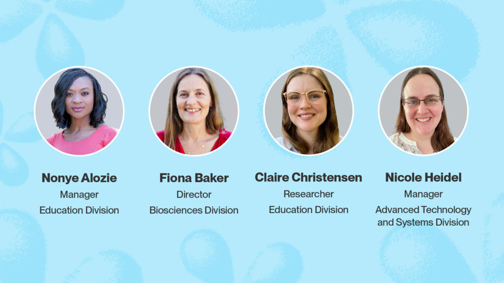 Nonye Alozie: I am a principal researcher, manager, and Deputy Director of STEM and CS in the Center for Education Research and Innovation of the Education Division. Currently, I am interested in productive, transformative, and innovative ways to use AI for learning. I’d like to see more science professionals work with students in learning environments to build bridges between education research, practice, and community needs. Because of SRI’s dynamic environment, I’ve had the privilege of engaging with science assessment specialists, machine learning experts, science educators, anthropologists, and others.