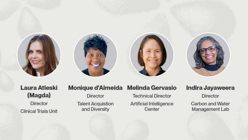 March is Women’s History Month, an opportunity to acknowledge the contributions made by women who are making a difference. In recognition, we’re honoring the women of SRI, whose cutting-edge work and dedication continue to power global innovation in science, technology, education, and business. Here we offer a glimpse of just a few of those women, each of whom describes her role at SRI, her thoughts on working in STEM and beyond, and her advice to women who are considering their life’s work.