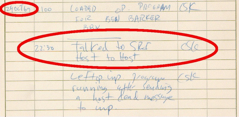 補足ですが、ネットワーク接続が行われた日付が本当に10月29日なのかどうかを疑う人もいました。その人々の調査によると、UCLAのコンピューターラボで見つかった日誌に「10月29日」という日付が走り書きされてあったため、これがその出来事が起こった”正式”な日付になったといいます。