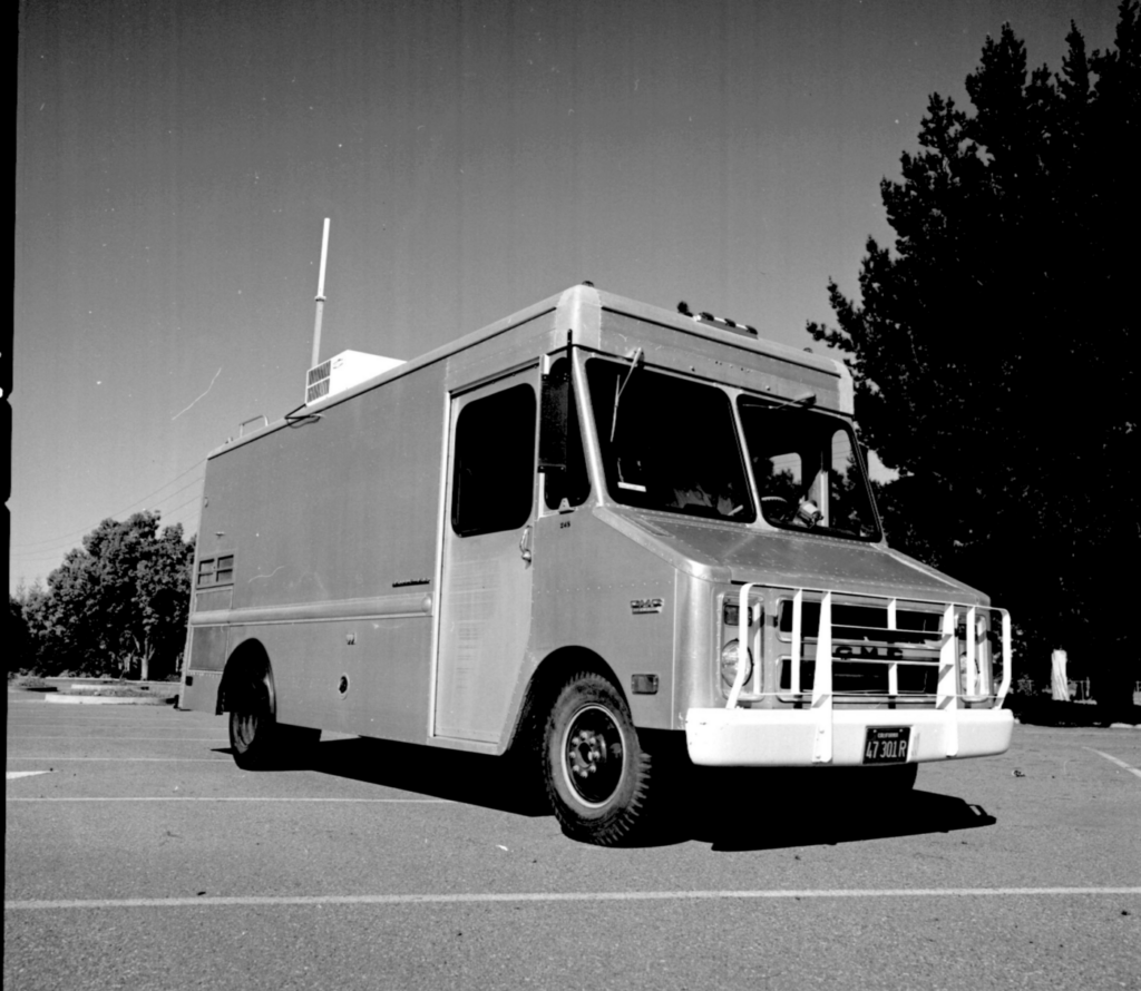 TCP標準が設計されると、個々のコンピューターネットワーク間の接続をテストすることができるようになりました。SRI Internationalの発案とは、バン(上図の車)にコンピューターノードを設置するという斬新なアイデアです。バンは移動ができるので、さまざまな場所へ移動をしてネットワークの接続の堅牢性をテストする事ができました。1976年8月、研究チーム8名を乗せたバンが、カリフォルニア州ポルトラバレーの山の上にある宿泊施設の隣に駐車しました。この場所が選ばれたのは、貴重なテストを実施する上でSRI Internationalから十分に離れていて、なおかつ無線通信を維持する限界に近い距離であったためです。